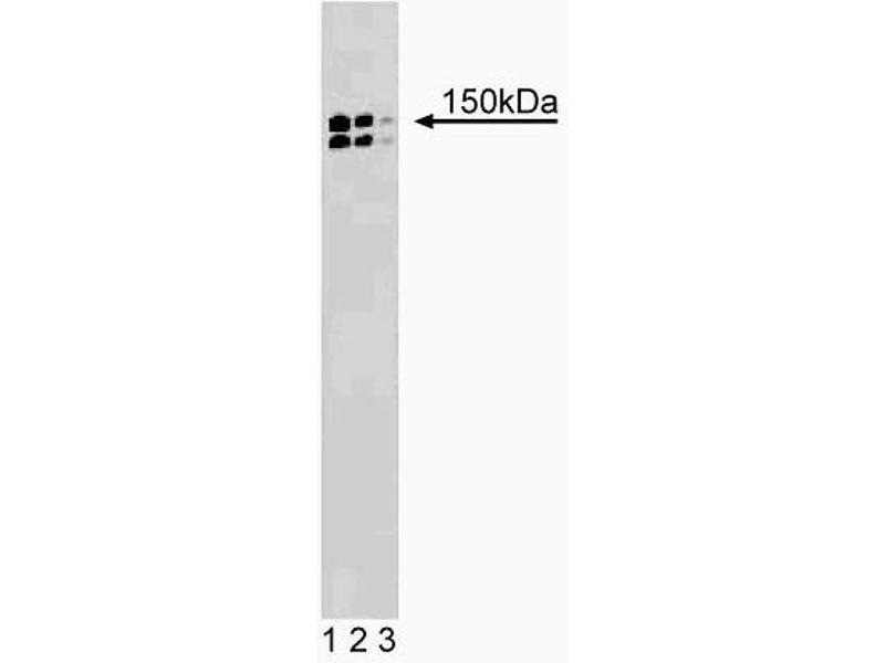 - P150 [Glued] was identified as a polypeptide associated with cytoplasmic dynein,the minus-end-directed microtubule-based motor protein. p150 [Glued] is also a member of the oligomeric dynactin complex. Dynactin mediates dynein-driven vesicle motility, as well as lower eukaryote nuclear transport. p150 [Glued] bears significant homology to the product of the Glued gene in Drosophila. It has been shown in vitro to be a required activator of dynein-mediated transport along microtubules. The p150 [Glued] component of the dynactin complex binds to microtubules and the actin-like protein Centractin (Arp-1), another member of the dynactin complex. In the developing rat, p150 [Glued] is expressed at high levels in neural tissue. Microtubule binding assays with selected constructs of p150 [Glued] indicate that amino acids 39-150 are required for microtubule association.