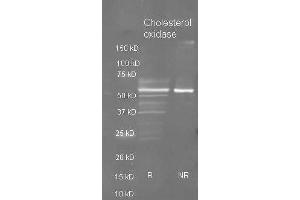 Application Note: Anti-Cholesterol Oxidase has been tested by ELISA, dot blot, and western blot. This product is assayed against 1.0 μg of Cholesterol Oxidase in a standard capture ELISA using Peroxidase Conjugated Streptavidin #S000-03 and ABTS (2,2'-azino-bis-[3-ethylbenthiazoline-6-sulfonic acid]) code # ABTS-100 as a substrate for 30 minutes at room temperature. A working dilution of 1:4,000 to 1:20,000 of the reconstitution concentration is suggested for this product.