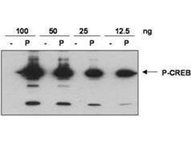 Immunogen: CREB phospho peptide corresponding to amino acid residues 122-147 of the human protein conjugated to Keyhole Limpet Hemocyanin (KLH).
