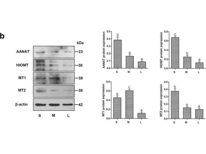 AANAT Reactivité: Humain, Souris, Rat, Mouton ELISA, WB, IF (cc), IF (p), IHC (fro), IHC (p) Hôte: Lapin Polyclonal unconjugated