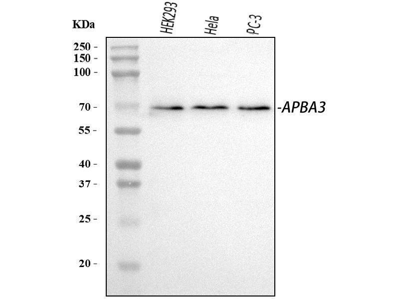 APBA3 Reactivité: Souris WB, IHC, IP, ICC Hôte: Lapin Polyclonal unconjugated