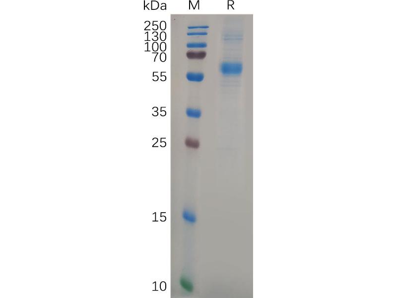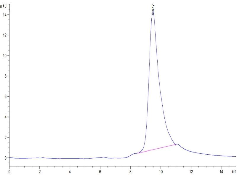 The purity of the protein is greater than 95 % as determined by SDS-PAGE and Coomassie blue staining.