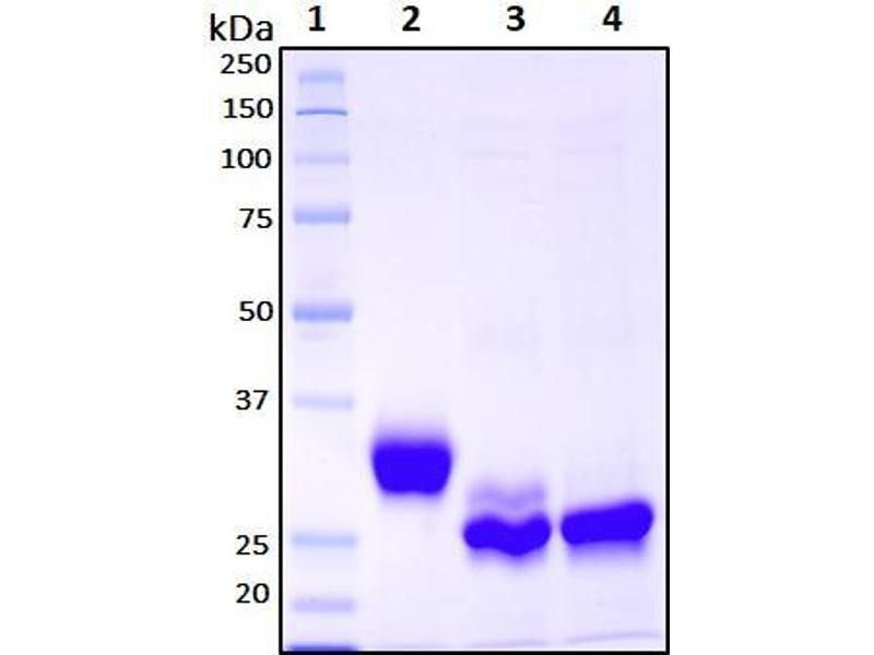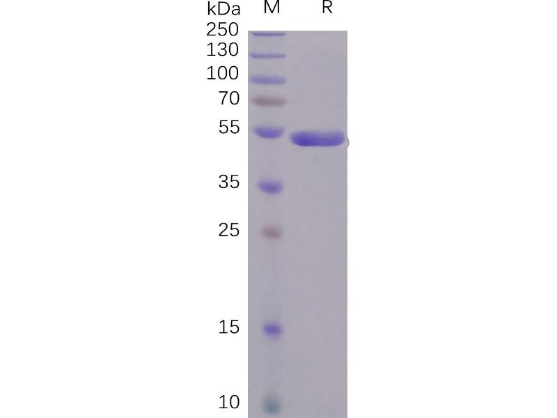 The purity of the protein is greater than 95 % as determined by SDS-PAGE and Coomassie blue staining.