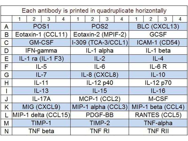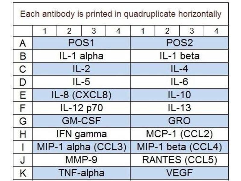 Ci-dessous, vous trouverez tous les réseaux d'anticorps disponibles pour la mesure quantitative de la concentration de plusieurs analytes. Pour plus d'informations concernant nos puces ELISA multiplex, veuillez contacter notre service clientèle.