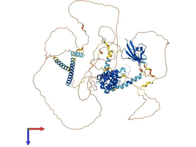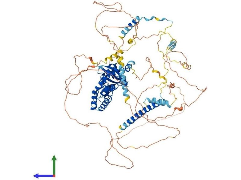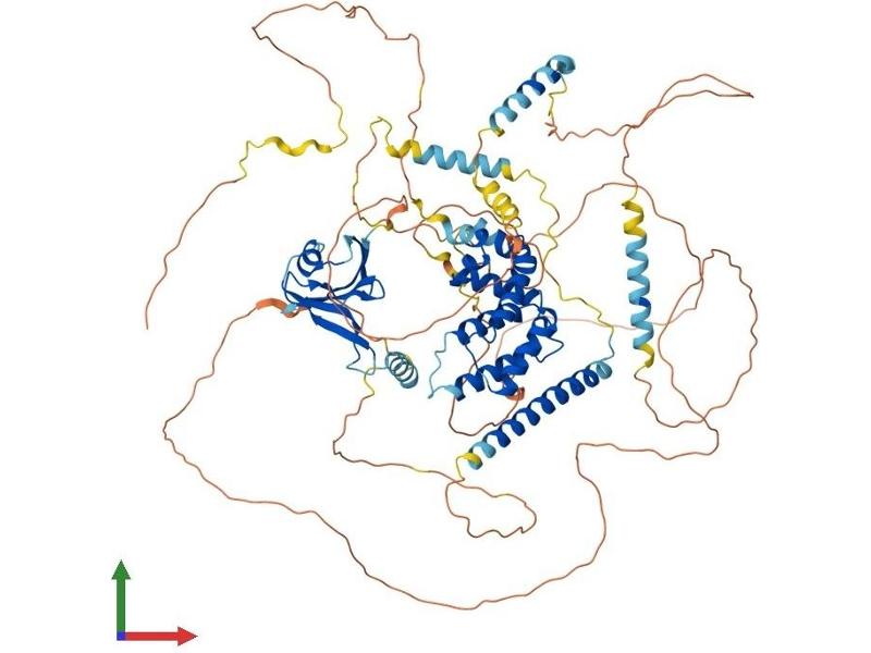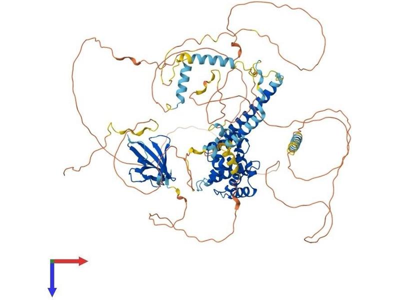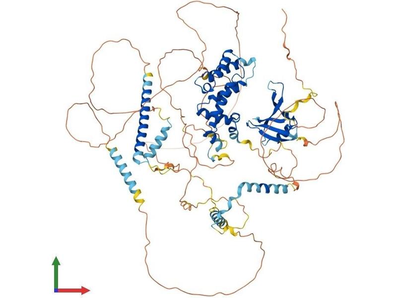 This gene encodes a cytoplasmic protein which contains a regulation of G-protein signaling (RGS) domain and a dishevelled and axin (DIX) domain. The encoded protein interacts with adenomatosis polyposis coli, catenin beta-1, glycogen synthase kinase 3 beta, protein phosphate 2, and itself. This protein functions as a negative regulator of the wingless-type MMTV integration site family, member 1 (WNT) signaling pathway and can induce apoptosis. The crystal structure of a portion of this protein, alone and in a complex with other proteins, has been resolved. Mutations in this gene have been associated with hepatocellular carcinoma, hepatoblastomas, ovarian endometriod adenocarcinomas, and medullablastomas. Two transcript variants encoding distinct isoforms have been identified for this gene. [provided by RefSeq, Dec 2010].