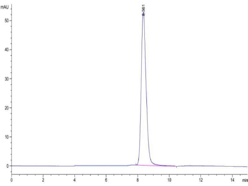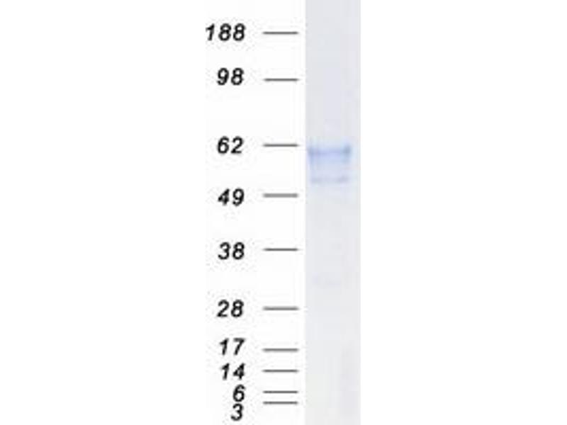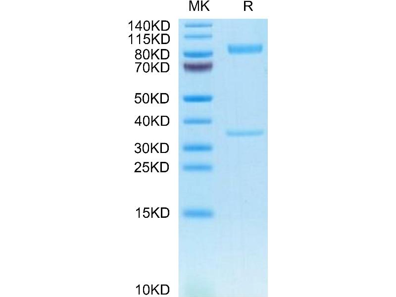 The purity of the protein is greater than 85 % as determined by SDS-PAGE and Coomassie blue staining.