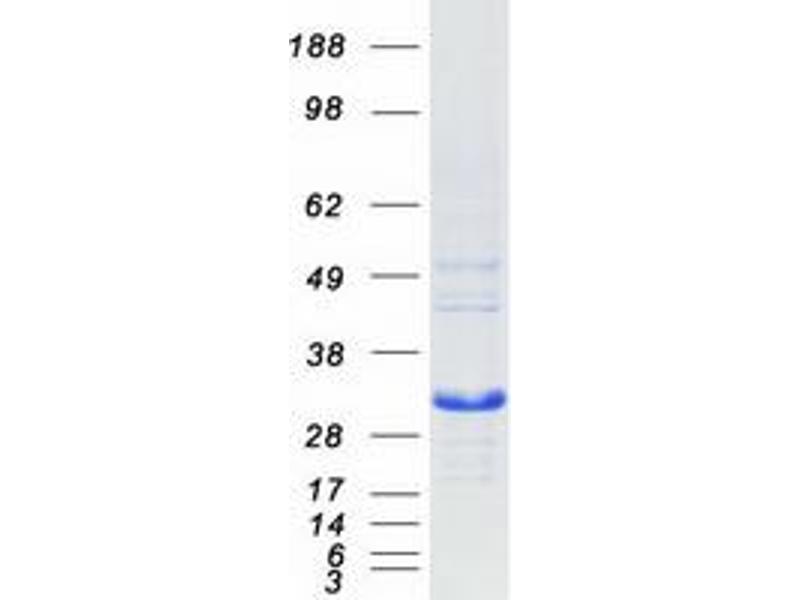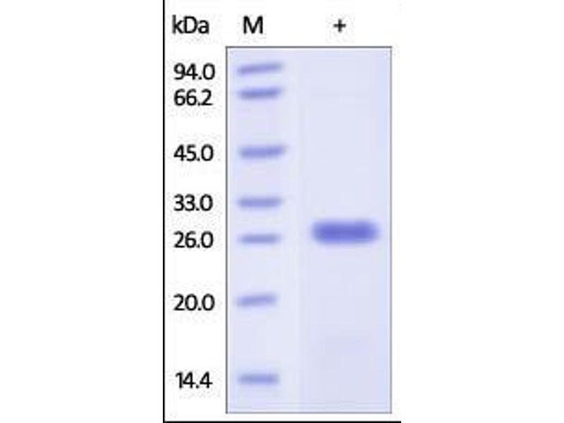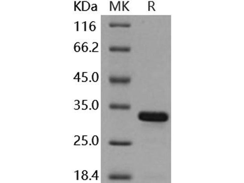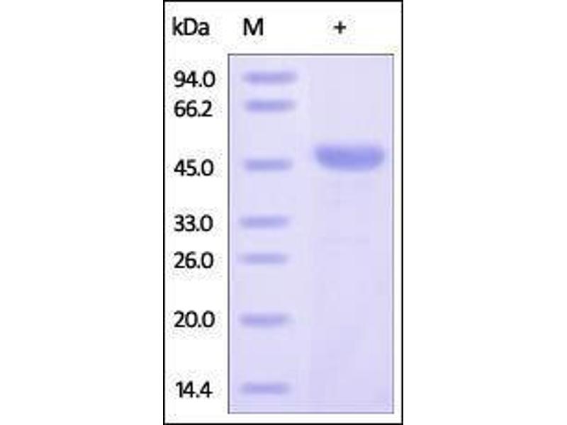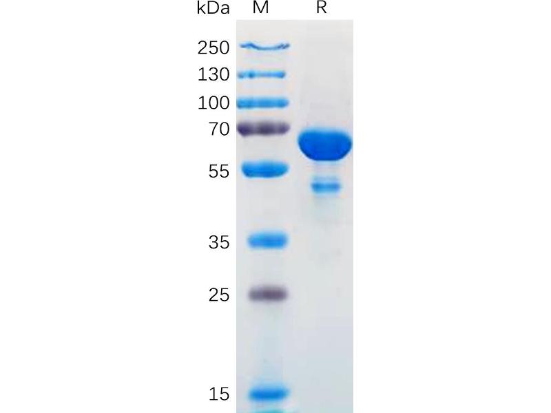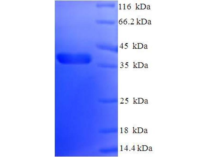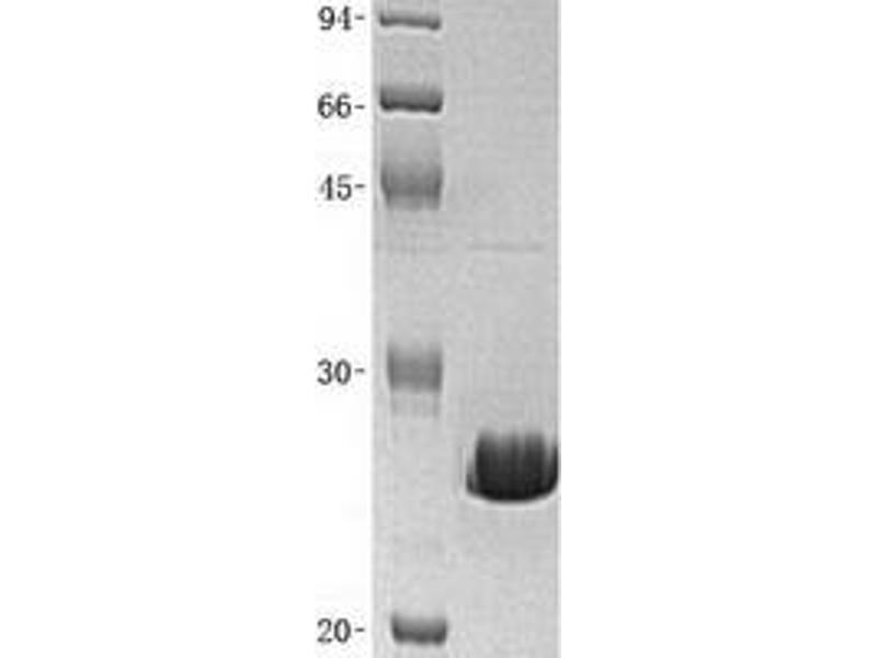 The purity of the protein is greater than 95 % as determined by SDS-PAGE and Coomassie blue staining.