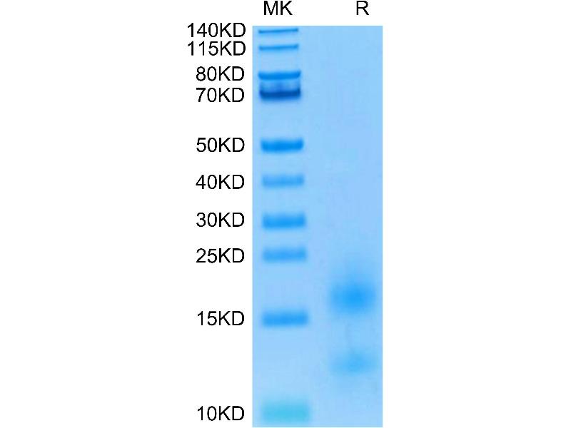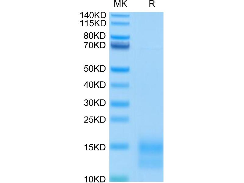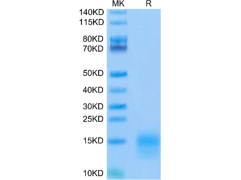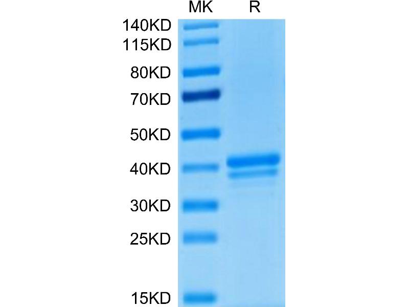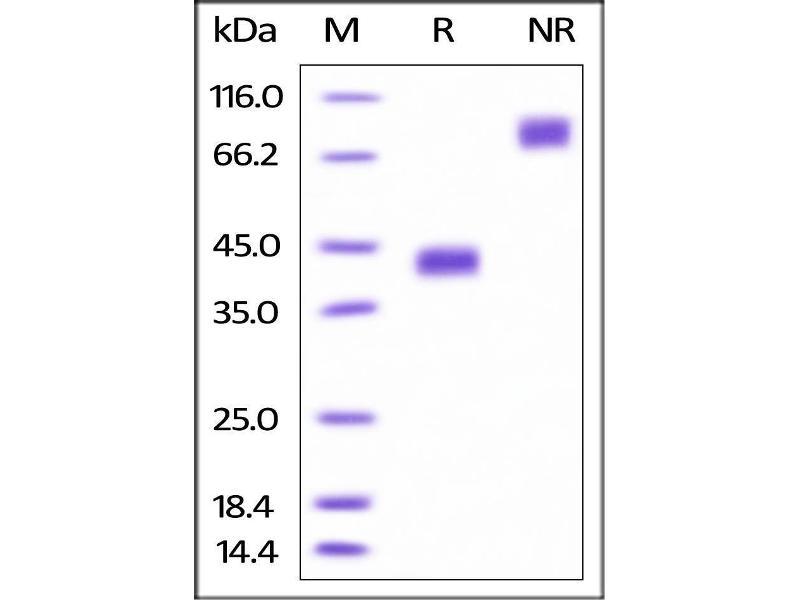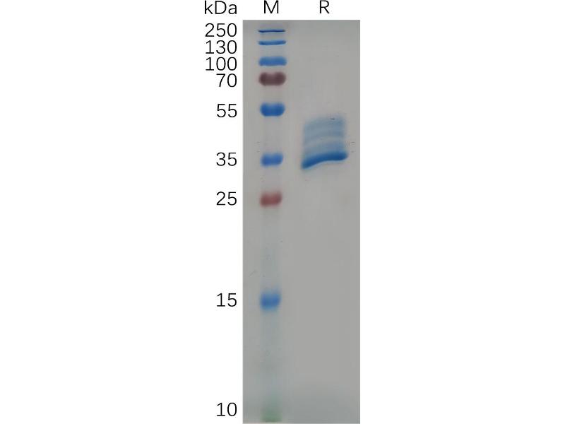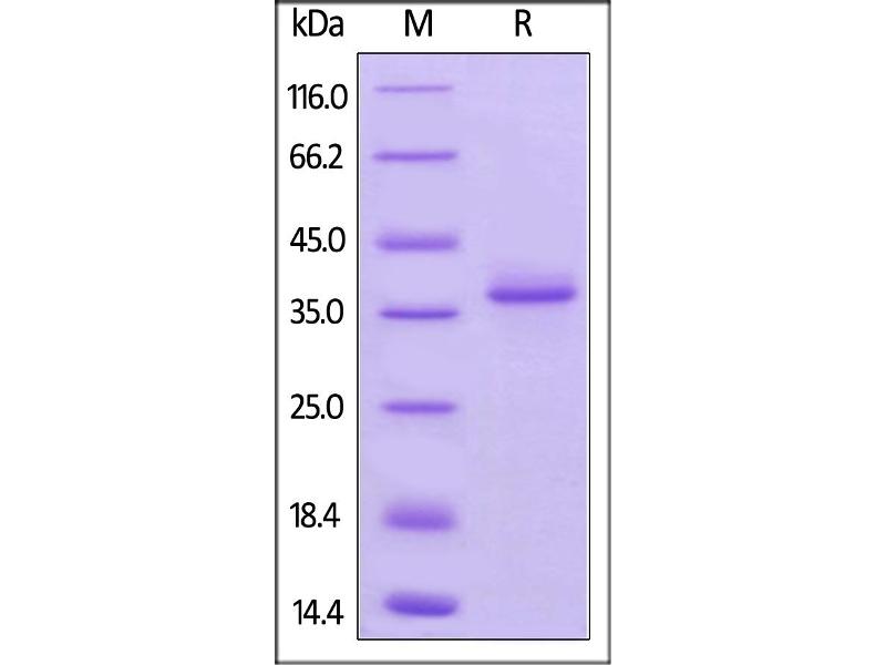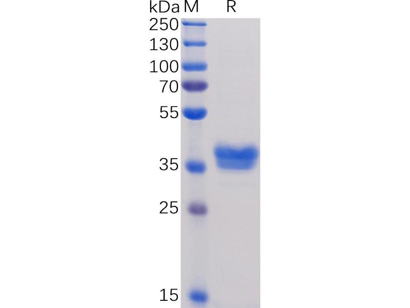 The purity of the protein is greater than 95 % as determined by SDS-PAGE and Coomassie blue staining.