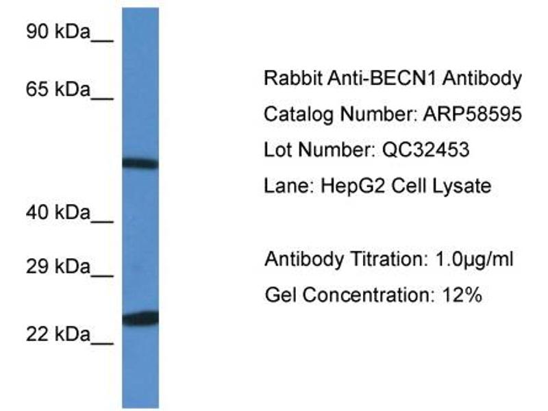 BECN1 Reactivité: Humain, Souris, Rat, Porc, Chien, Lapin, Boeuf (Vache), Cheval WB Hôte: Lapin Polyclonal unconjugated