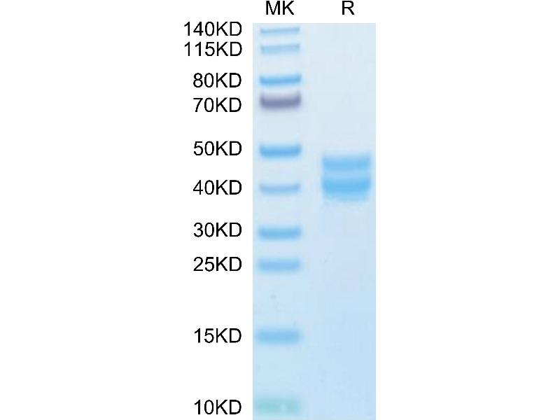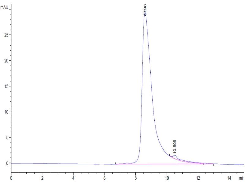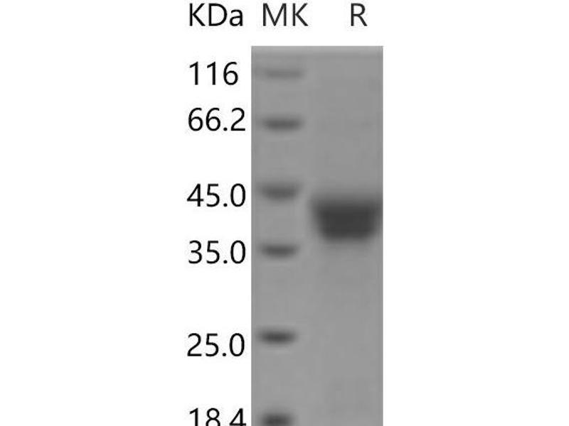 The purity of the protein is greater than 95 % as determined by SDS-PAGE and Coomassie blue staining.