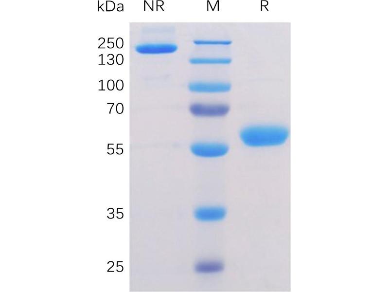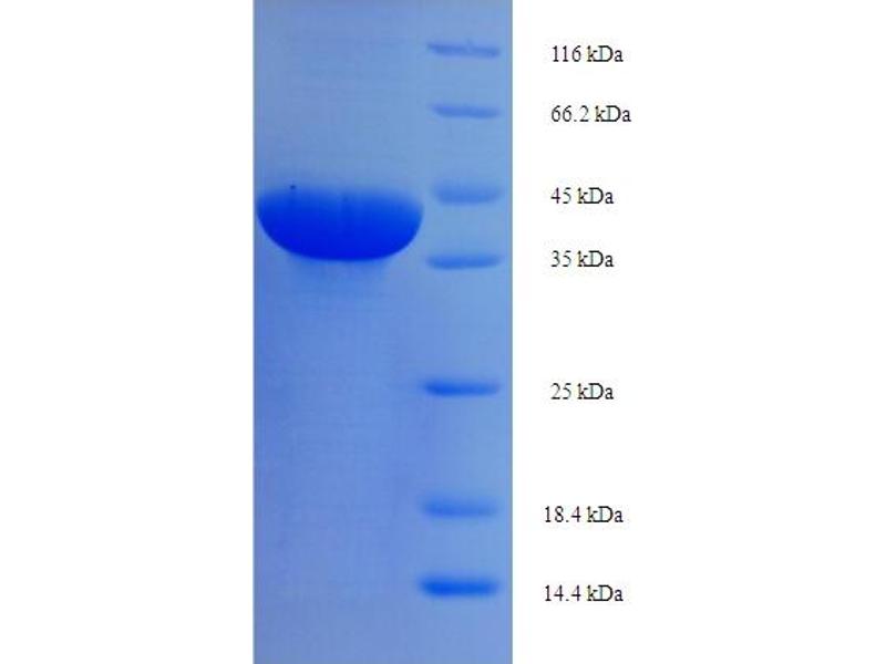 The purity of the protein is greater than 95 % as determined by SDS-PAGE and Coomassie blue staining.
