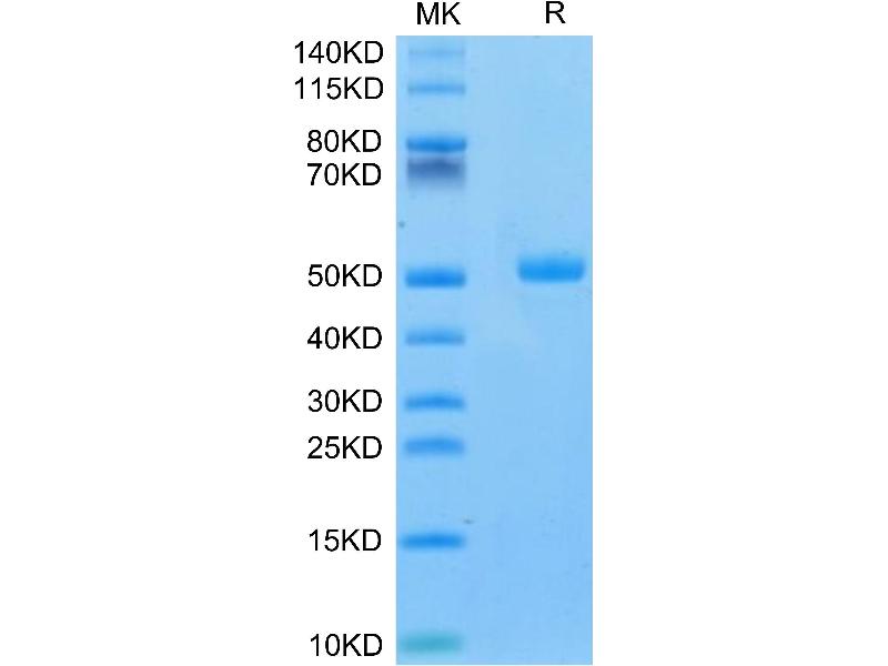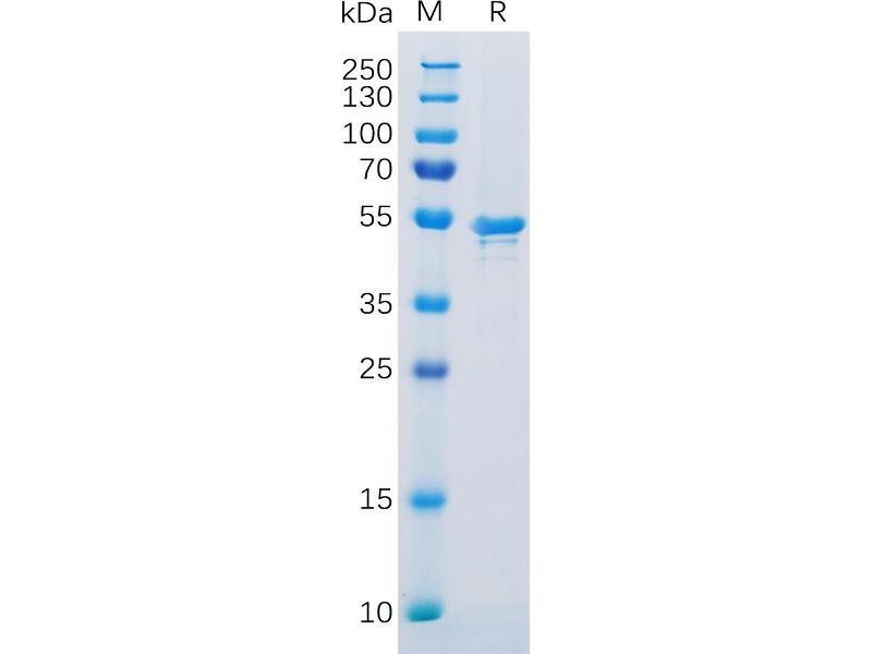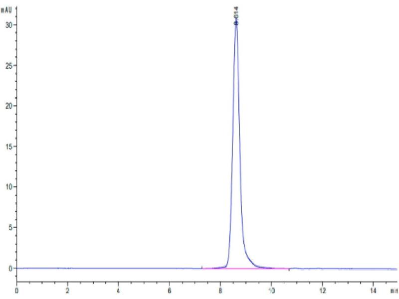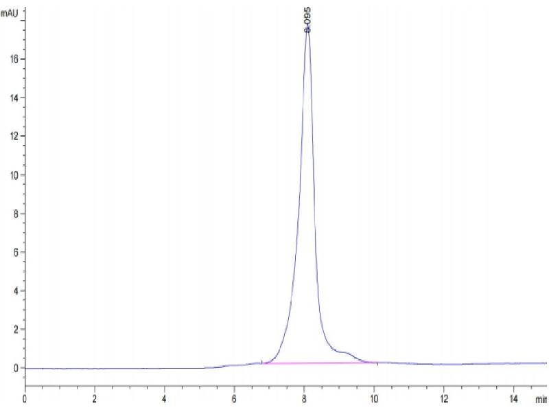 The purity of the protein is greater than 95 % as determined by SDS-PAGE and Coomassie blue staining.