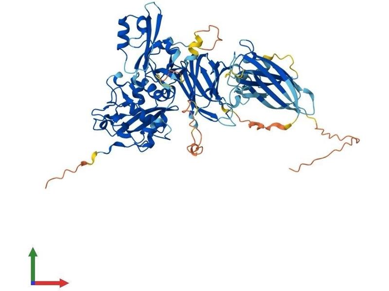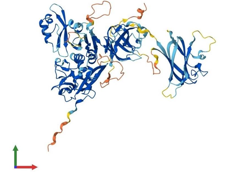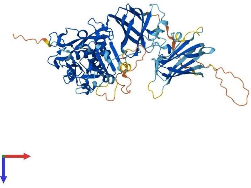 Calpains represent a ubiquitous, well-conserved family of calcium-dependent cysteine proteases. The calpain proteins are heterodimers consisting of an invariant small subunit and variable large subunits. The large catalytic subunit has four domains: domain I, the N-terminal regulatory domain that is processed upon calpain activation\; domain II, the protease domain\; domain III, a linker domain of unknown function\; and domain IV, the calmodulin-like calcium-binding domain. This gene encodes a large subunit. It is an atypical calpain in that it lacks the calmodulin-like calcium-binding domain and instead has a divergent C-terminal domain. It is similar in organization to calpains 5 and 6. This gene is associated with type 2 or non-insulin-dependent diabetes mellitus (NIDDM), and is located within the NIDDM1 region. Multiple alternative transcript variants have been described for this gene. [provided by RefSeq, Sep 2010].