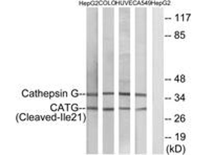 : "IL-1 and IL-36 are dominant cytokines in generalized pustular psoriasis." dans: The Journal of allergy and clinical immunology, Vol. 140, Issue 1, pp. 109-120, (2017) (PubMed).Pseudonymes pour Cathepsin G Anticorps