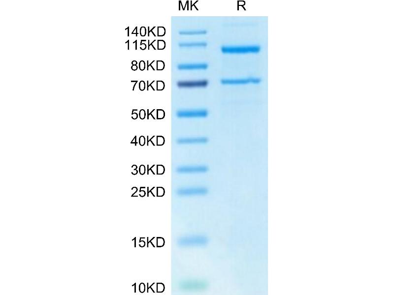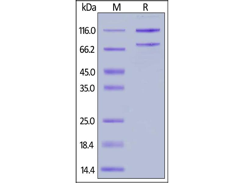 The purity of the protein is greater than 85 % as determined by SDS-PAGE and Coomassie blue staining.