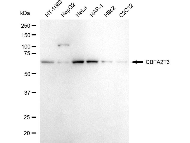 Choisissez l’un des 28 anticorps CBFA2T3 de notre liste de produits basés sur 18 images de validation.