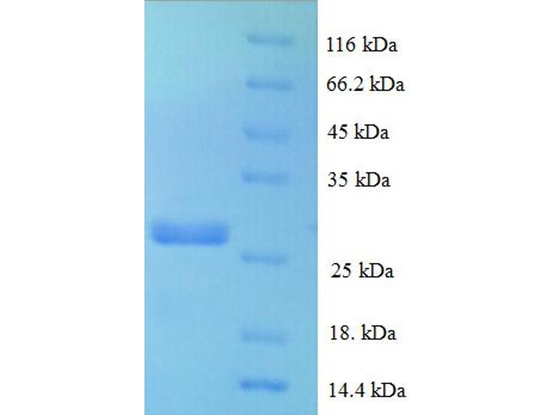 The purity of the protein is greater than 95 % as determined by SDS-PAGE and Coomassie blue staining.