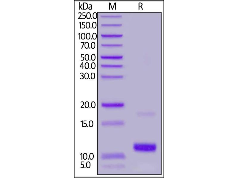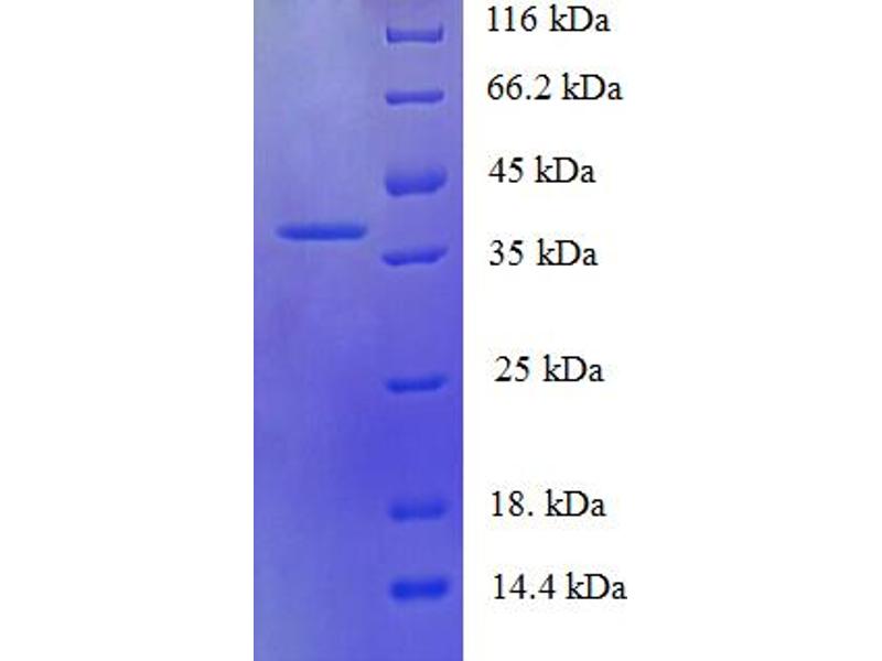 The purity of the protein is greater than 95 % as determined by SDS-PAGE and Coomassie blue staining.