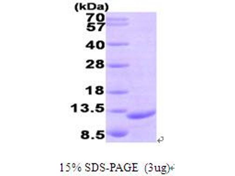 The purity of the protein is greater than 85 % as determined by SDS-PAGE and Coomassie blue staining.