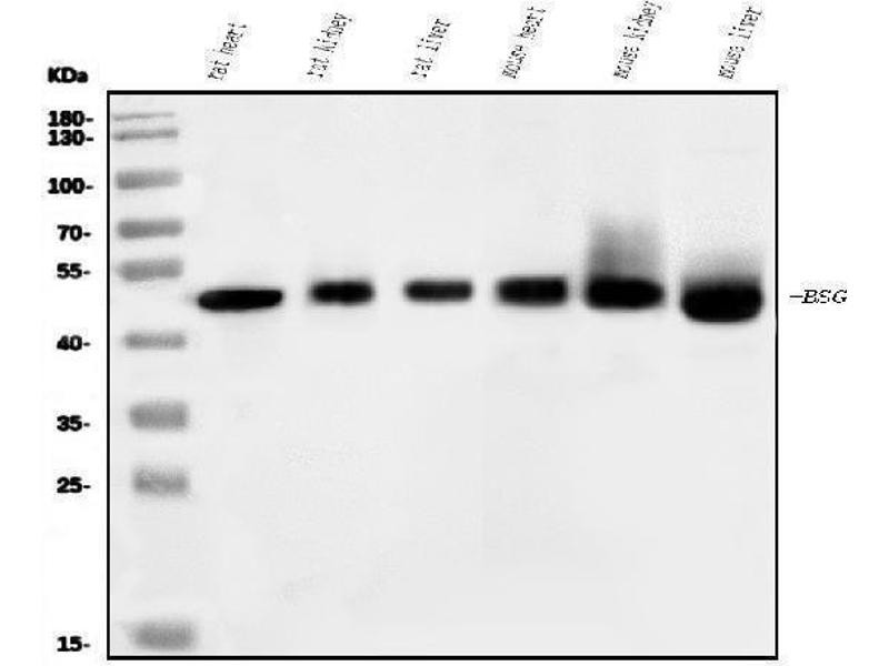 BSG Reactivité: Humain, Souris, Rat WB, IHC, IHC (p), IF (cc) Hôte: Lapin Monoclonal 12C3 unconjugated