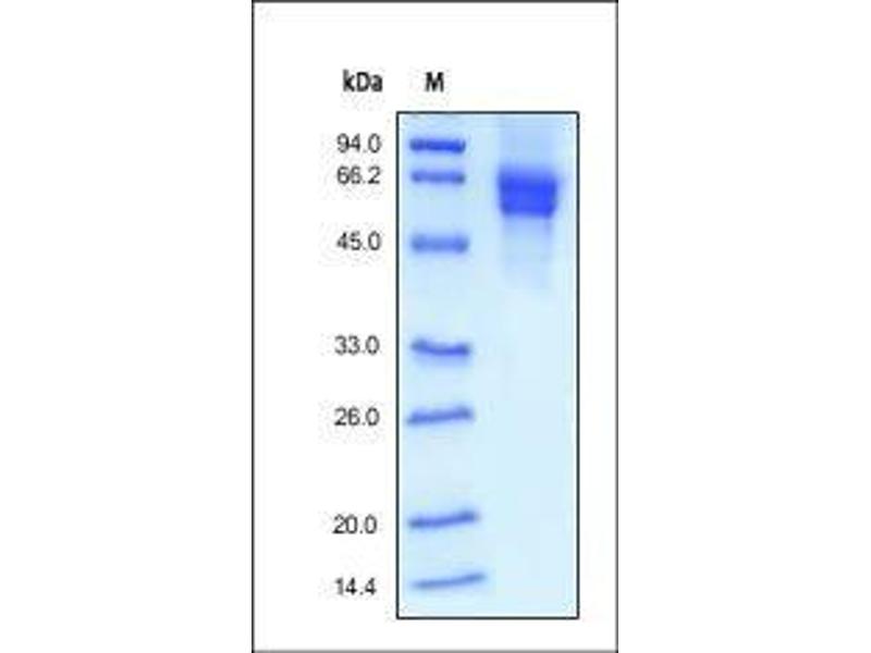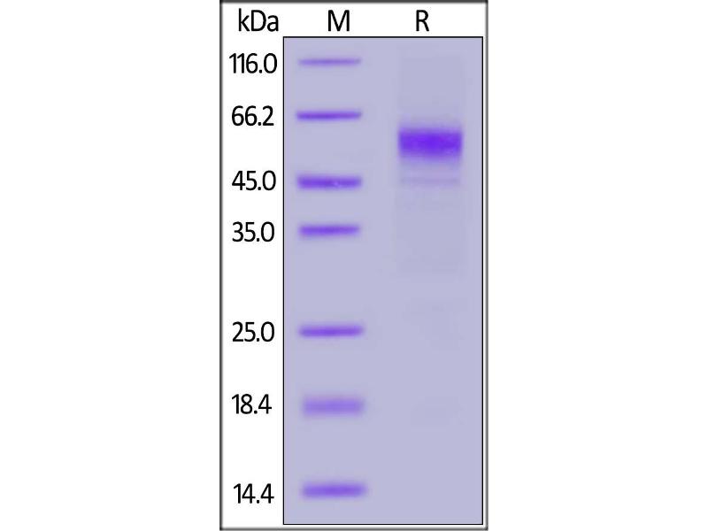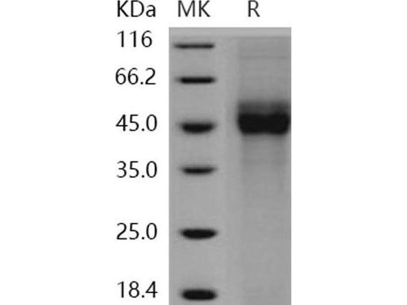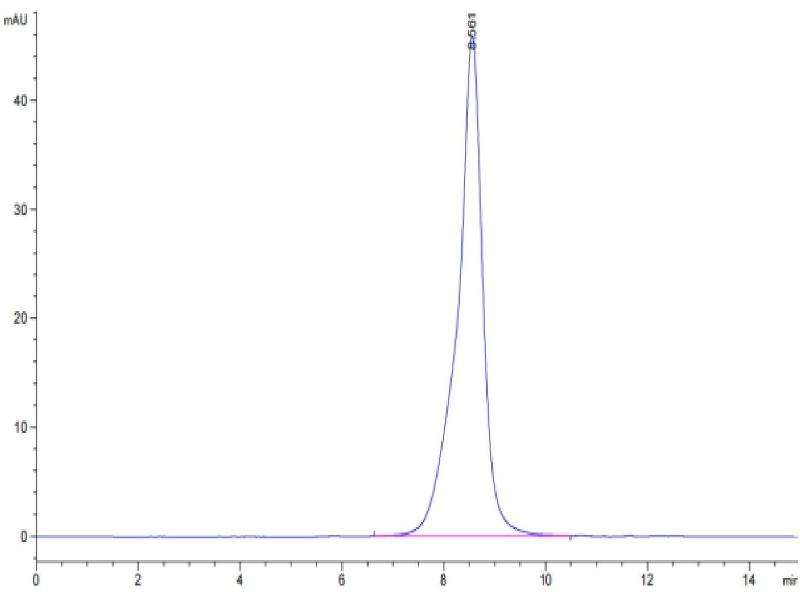 The purity of the protein is greater than 95 % as determined by SDS-PAGE and Coomassie blue staining.