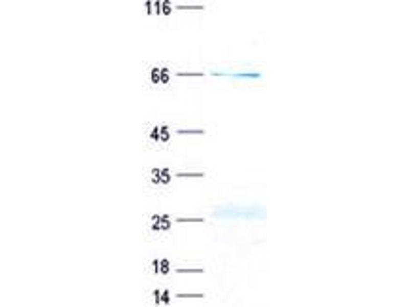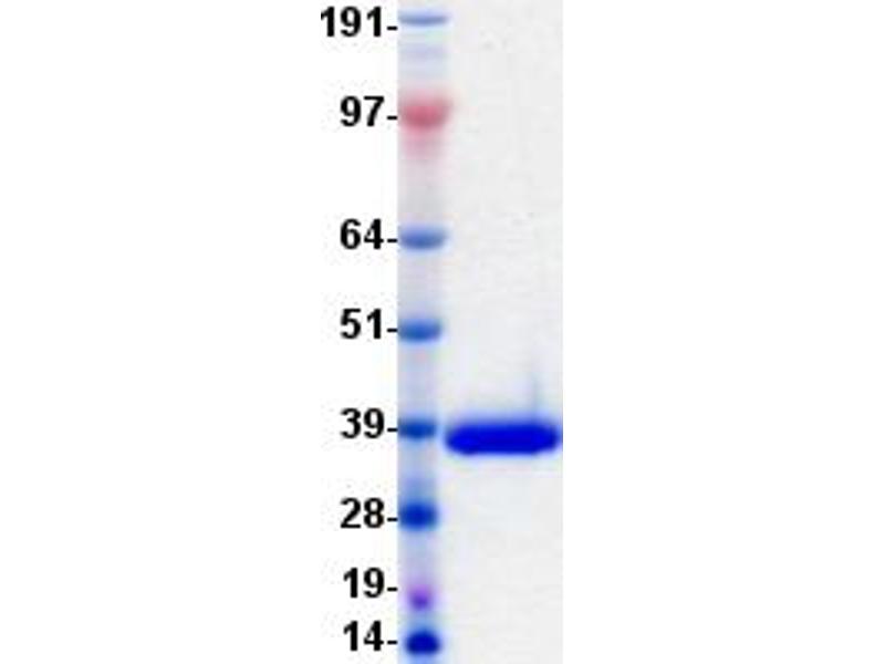 The purity of the protein is greater than 90 % as determined by SDS-PAGE and Coomassie blue staining.