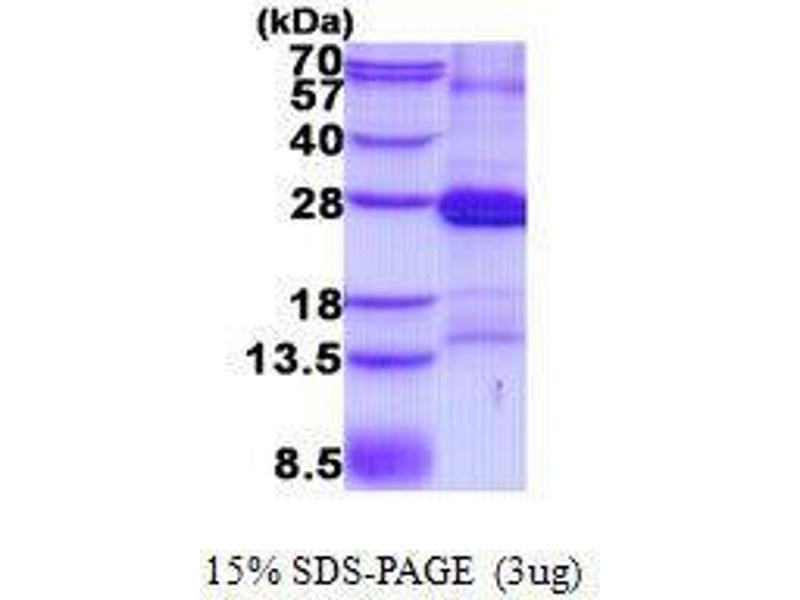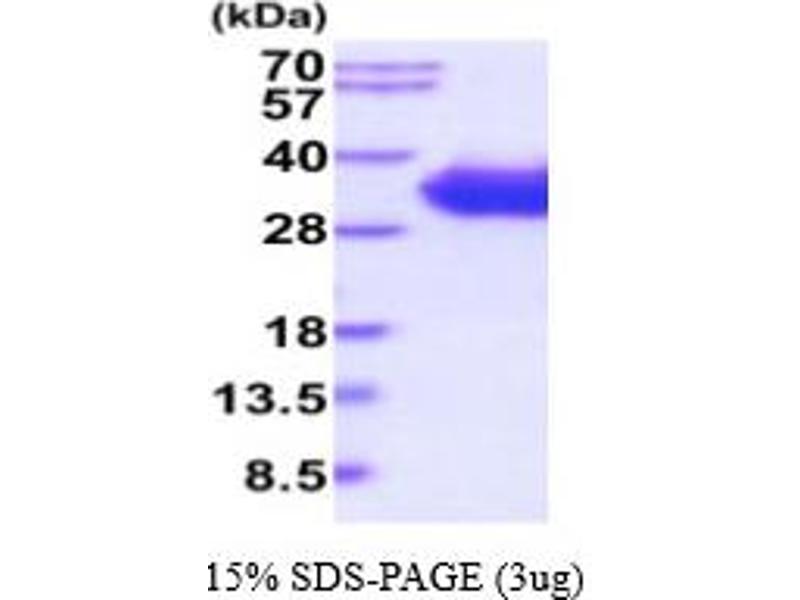 The purity of the protein is greater than 85 % as determined by SDS-PAGE and Coomassie blue staining.