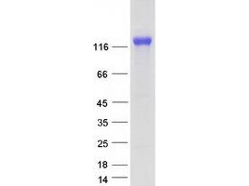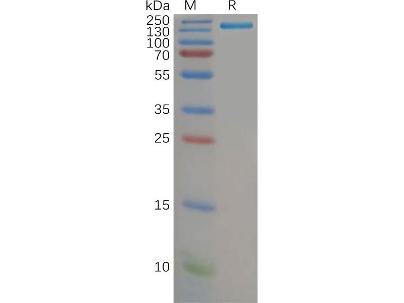 The purity of the protein is greater than 95 % as determined by SDS-PAGE and Coomassie blue staining.