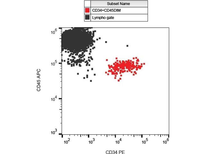 CD34 Reactivité: Humain FACS, ICC Hôte: Souris Monoclonal 4H11[APG] PE