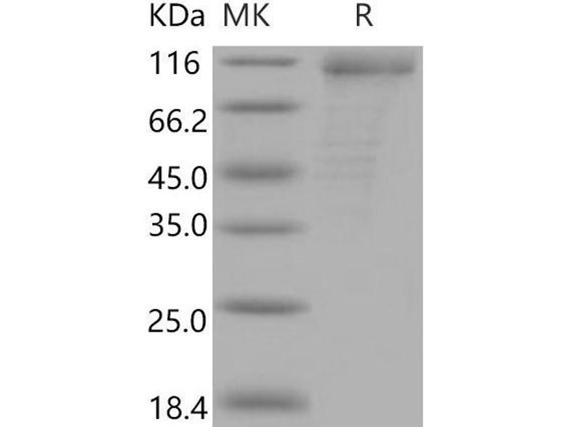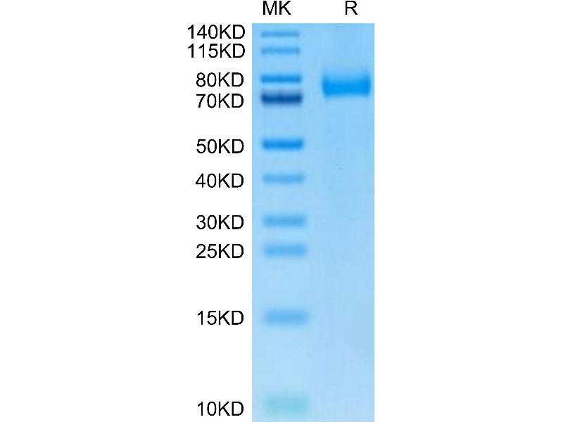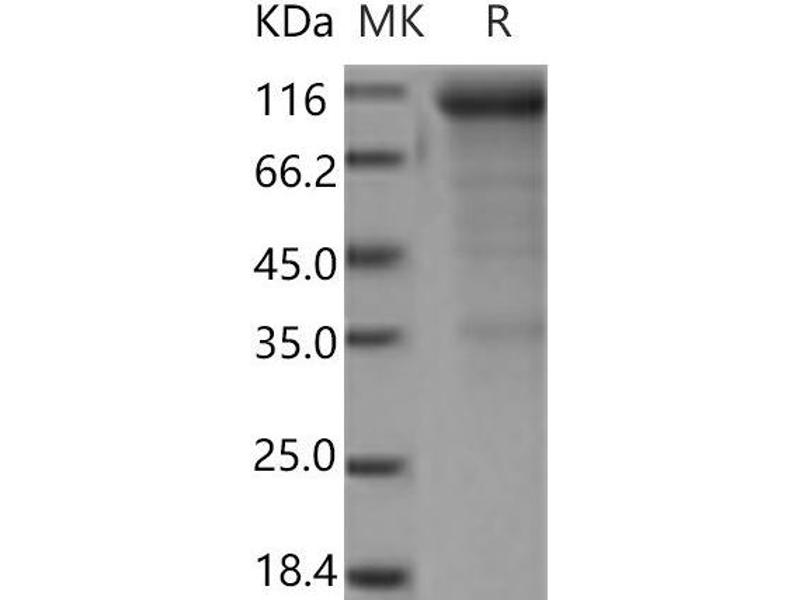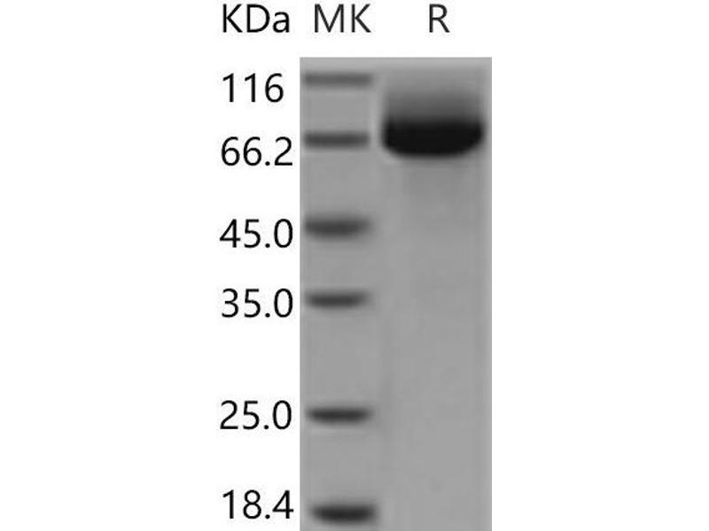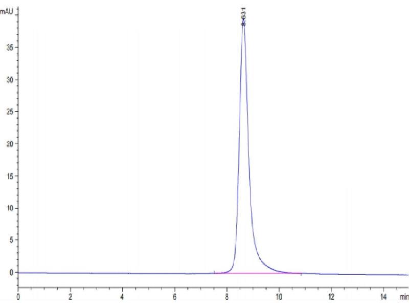 The purity of the protein is greater than 95 % as determined by SDS-PAGE and Coomassie blue staining.