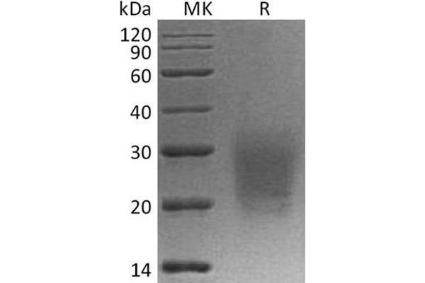 The purity of the protein is greater than 85 % as determined by SDS-PAGE and Coomassie blue staining.