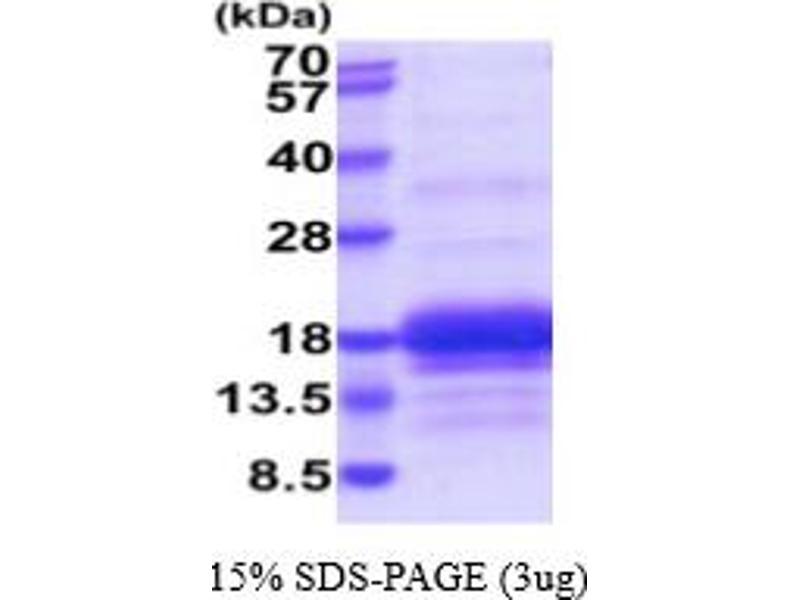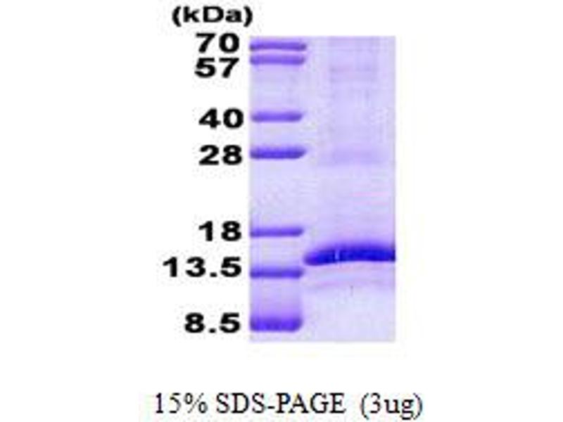 The purity of the protein is greater than 95 % as determined by SDS-PAGE and Coomassie blue staining.