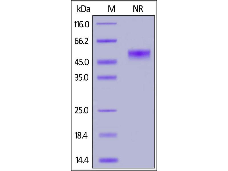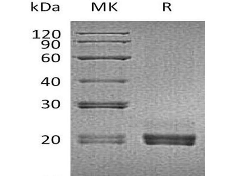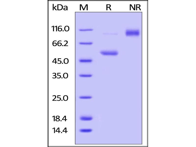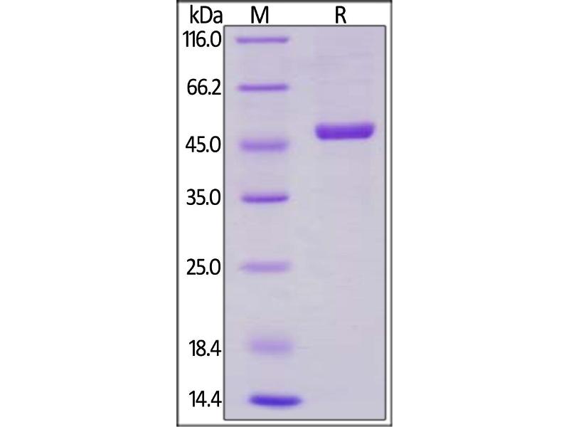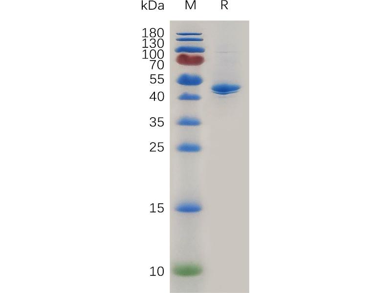 The purity of the protein is greater than 95 % as determined by SDS-PAGE and Coomassie blue staining.