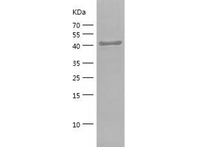 The purity of the protein is greater than 95 % as determined by SDS-PAGE and Coomassie blue staining.