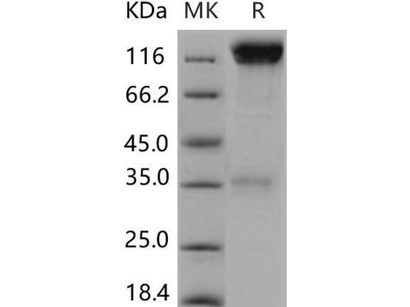 The purity of the protein is greater than 95 % as determined by SDS-PAGE and Coomassie blue staining.