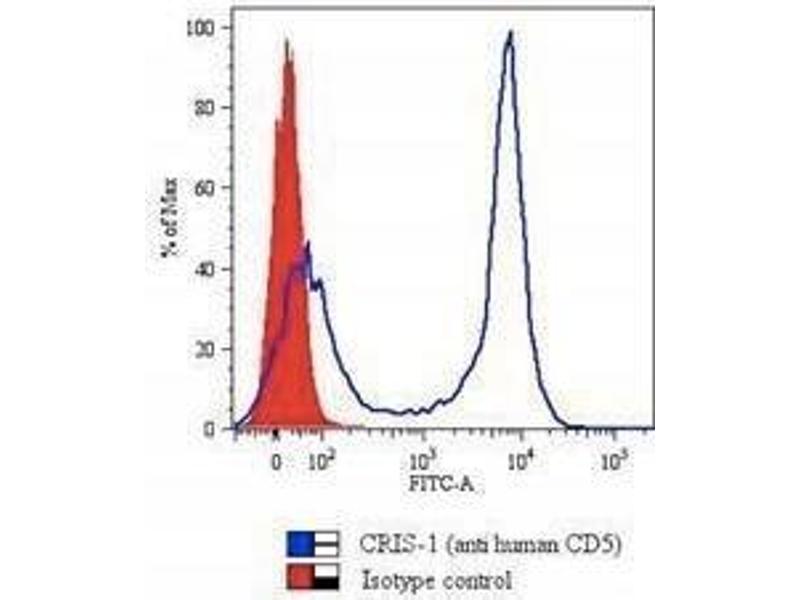 CD5 Reactivité: Humain, Macaque rhésus FACS, IF, IP, Func Hôte: Souris Monoclonal CRIS-1 unconjugated