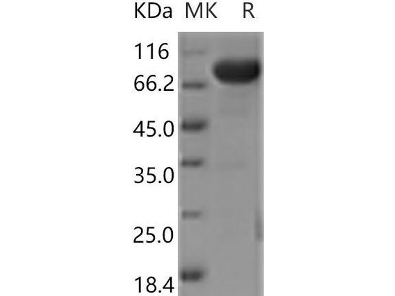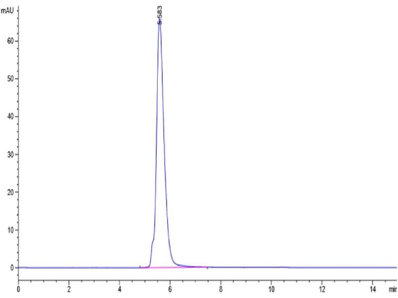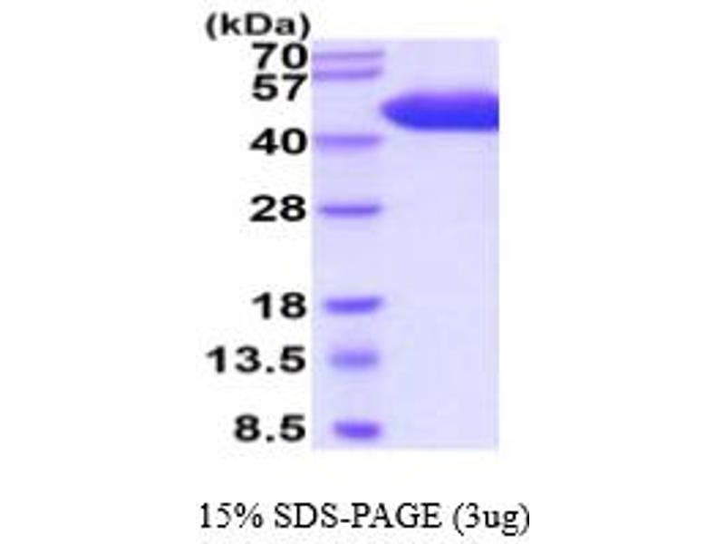 The purity of the protein is greater than 95 % as determined by SDS-PAGE and Coomassie blue staining.