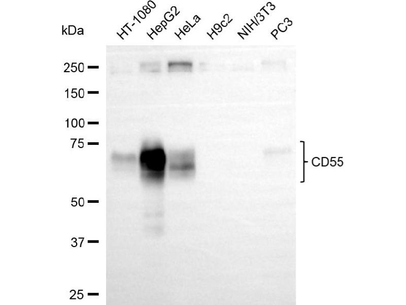 KO Validated CD55 Reactivité: Humain WB Hôte: Lapin Monoclonal 25GB435 unconjugated Recombinant Antibody
