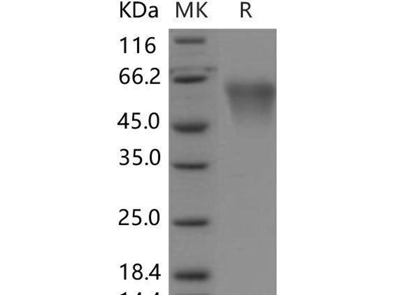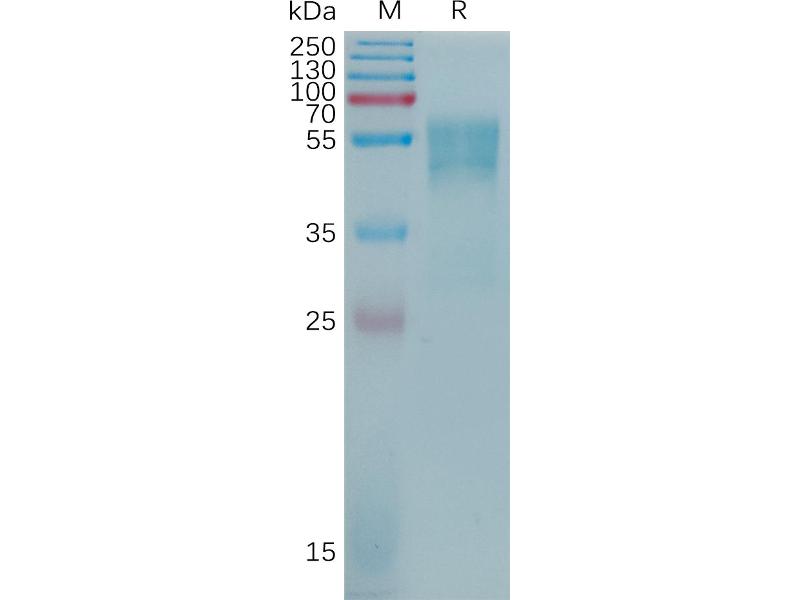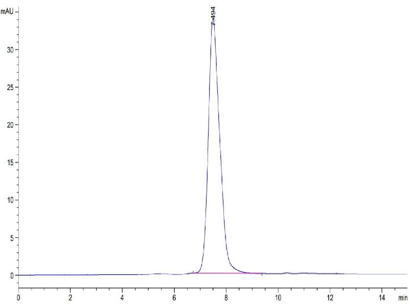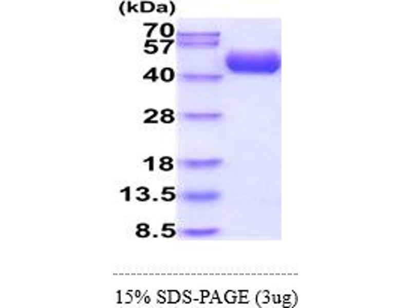 The purity of the protein is greater than 85 % as determined by SDS-PAGE and Coomassie blue staining.