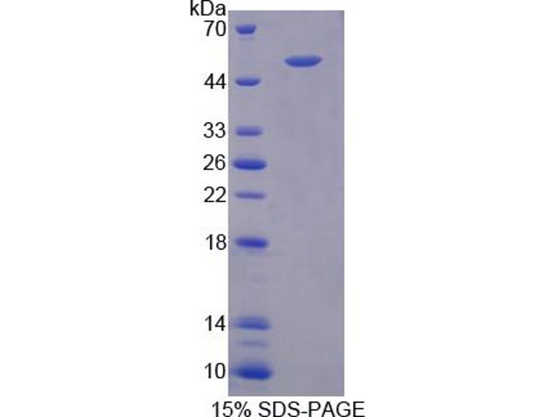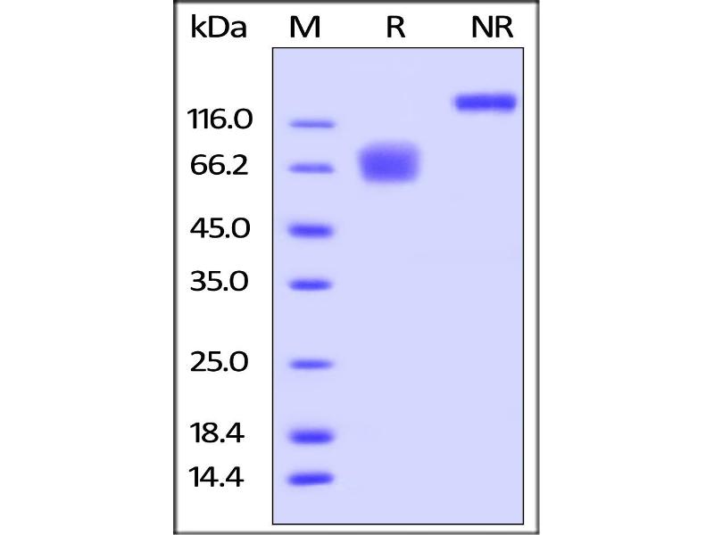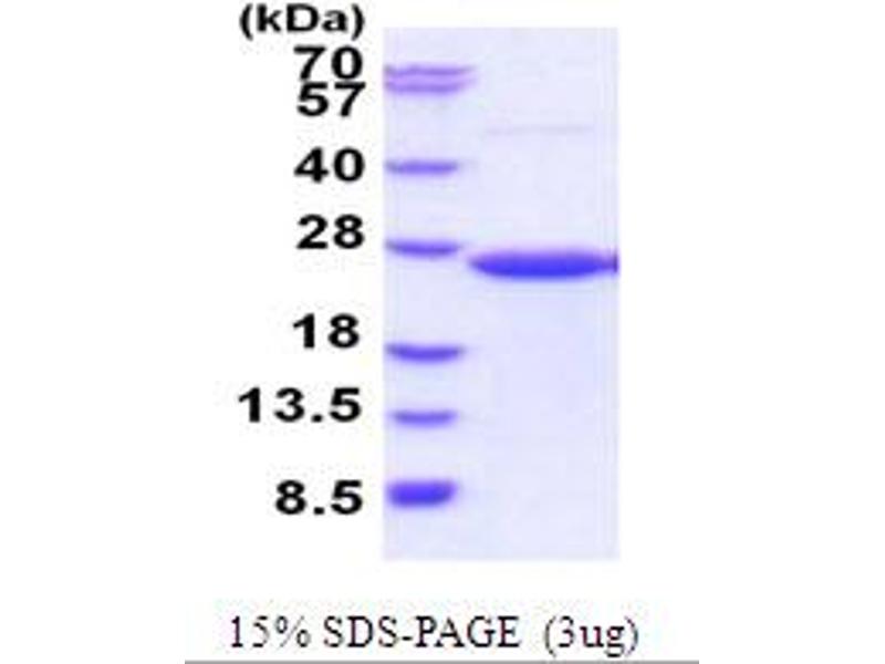 The purity of the protein is greater than 85 % as determined by SDS-PAGE and Coomassie blue staining.