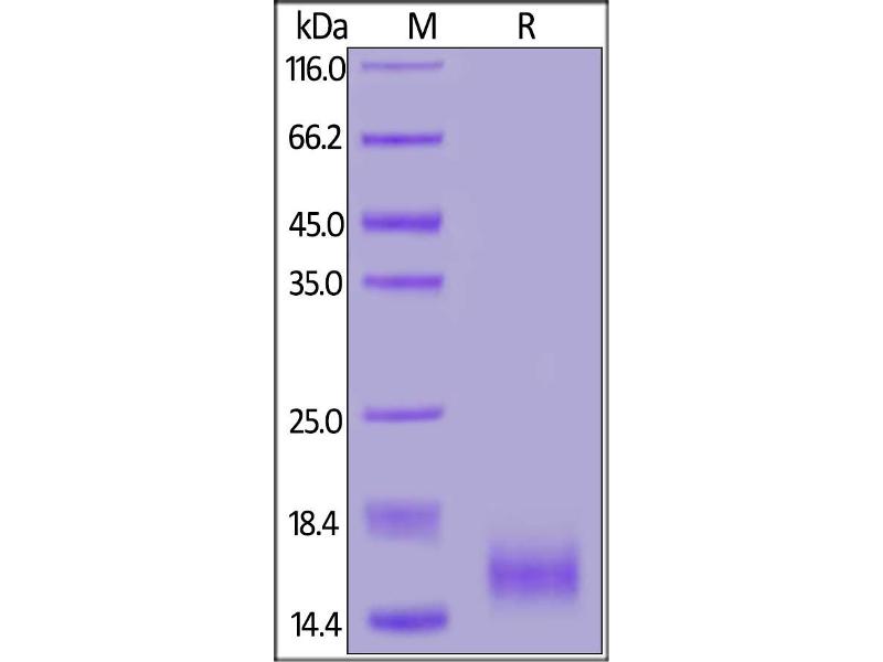 The purity of the protein is greater than 95 % as determined by SDS-PAGE and Coomassie blue staining.