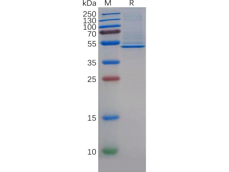 The purity of the protein is greater than 95 % as determined by SDS-PAGE and Coomassie blue staining.