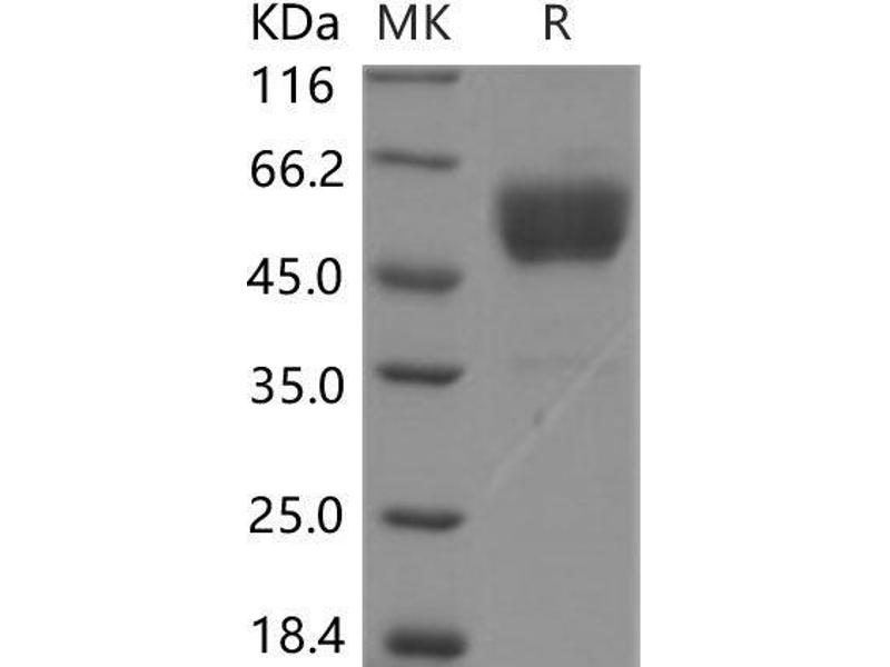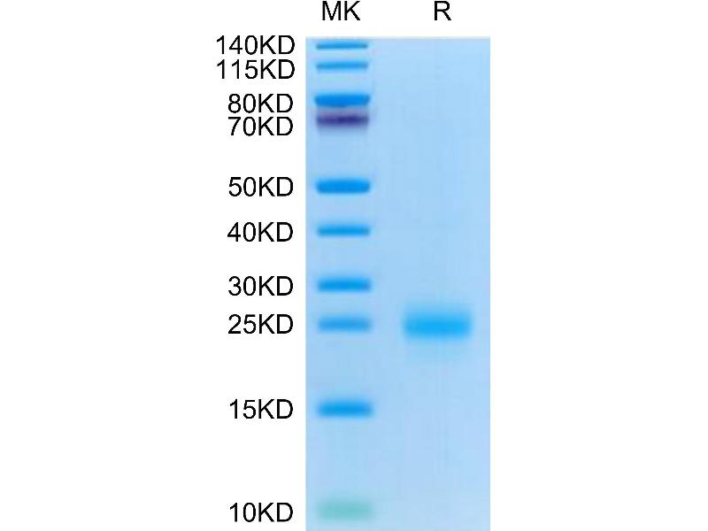 The purity of the protein is greater than 95 % as determined by SDS-PAGE and Coomassie blue staining.