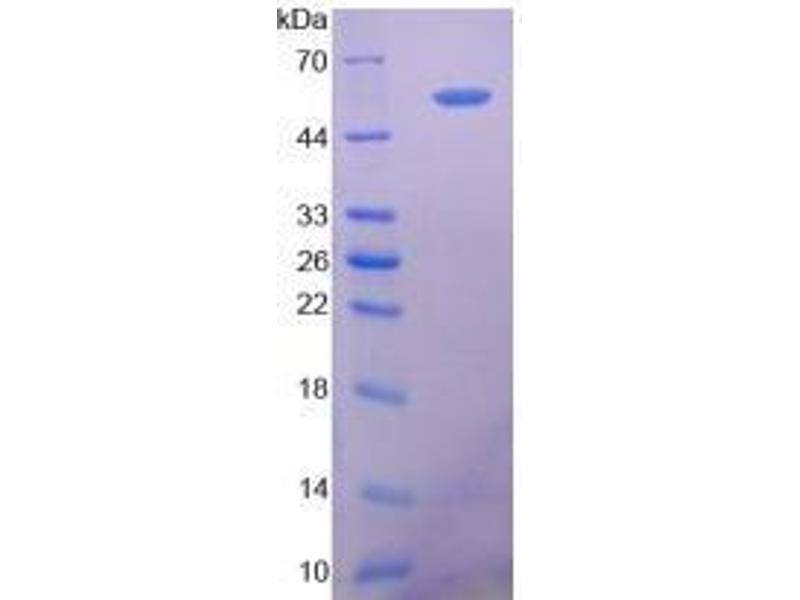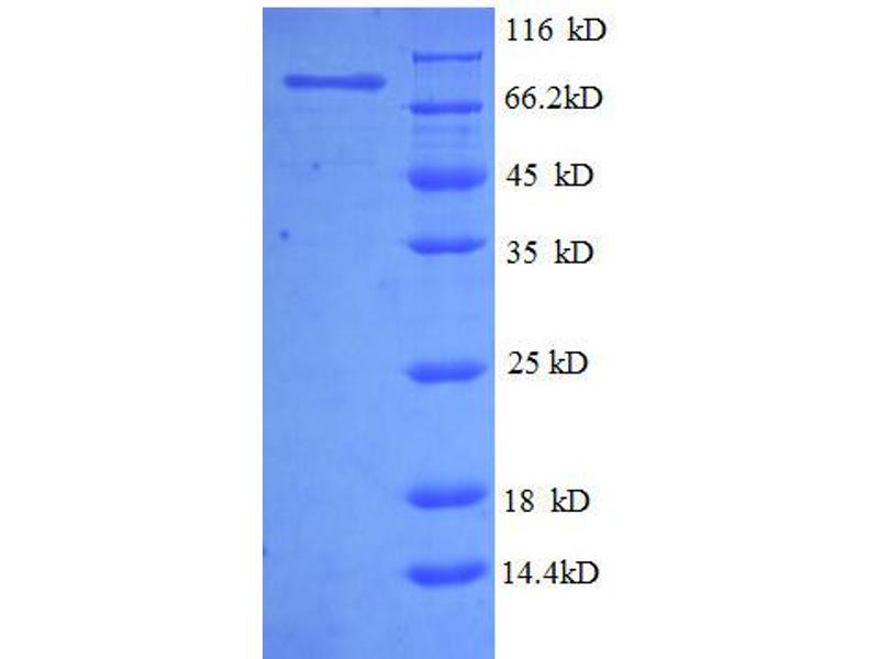 The purity of the protein is greater than 85 % as determined by SDS-PAGE and Coomassie blue staining.