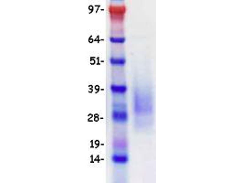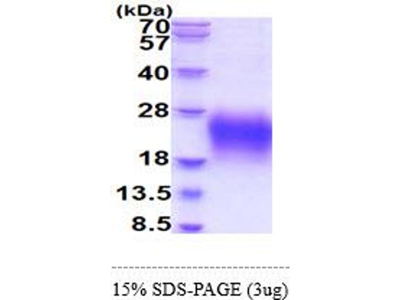 The purity of the protein is greater than 95 % as determined by SDS-PAGE and Coomassie blue staining.