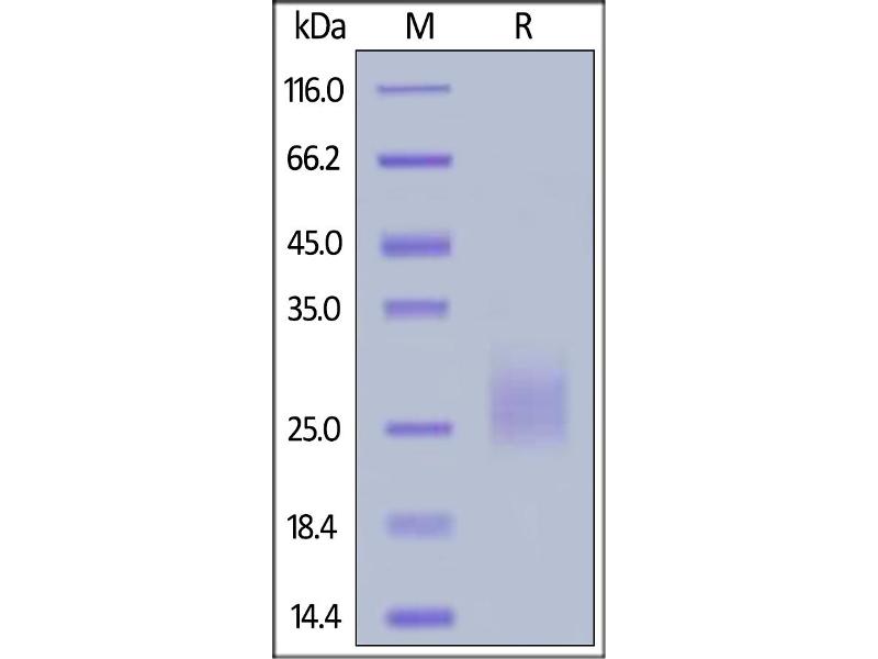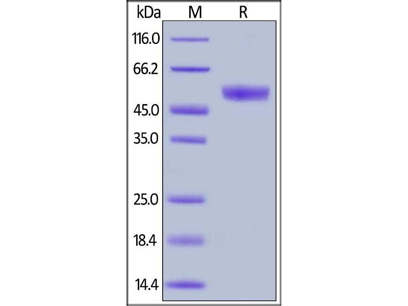 The purity of the protein is greater than 95 % as determined by SDS-PAGE and Coomassie blue staining.