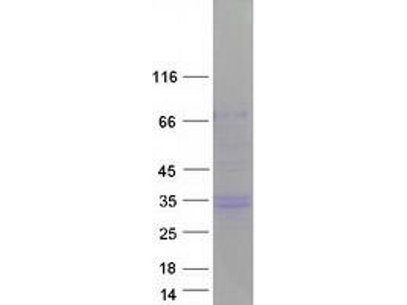 The purity of the protein is greater than 95 % as determined by SDS-PAGE and Coomassie blue staining.