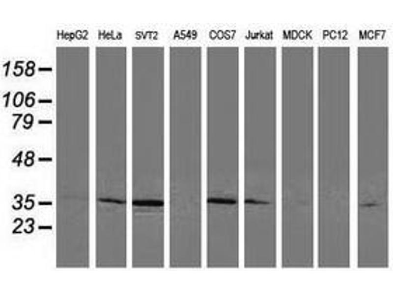 CDK2 Reactivité: Humain, Souris, Rat, Chien WB, IHC, IP, BI Hôte: Souris Monoclonal 55-Cdk2 unconjugated
