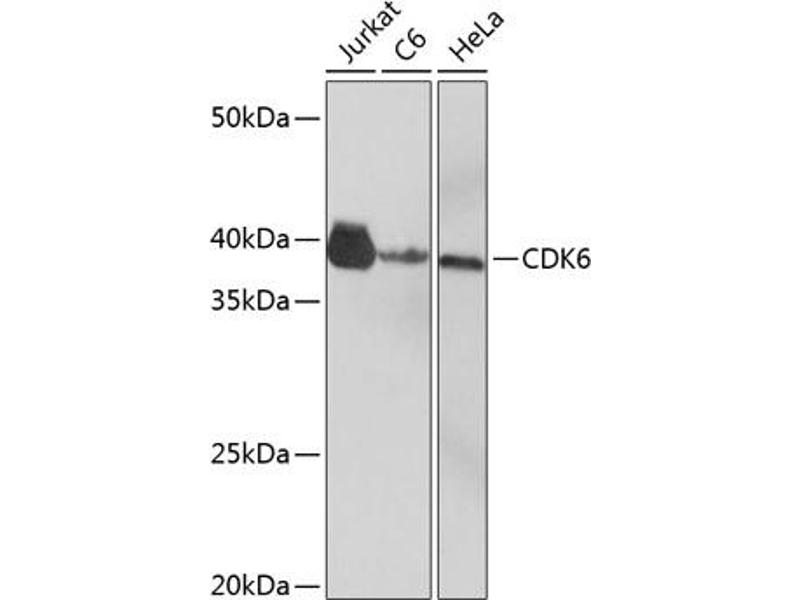 CDK6 Reactivité: Humain, Souris, Lapin, Boeuf (Vache), Chien, Cheval, Porc WB Hôte: Lapin Polyclonal unconjugated