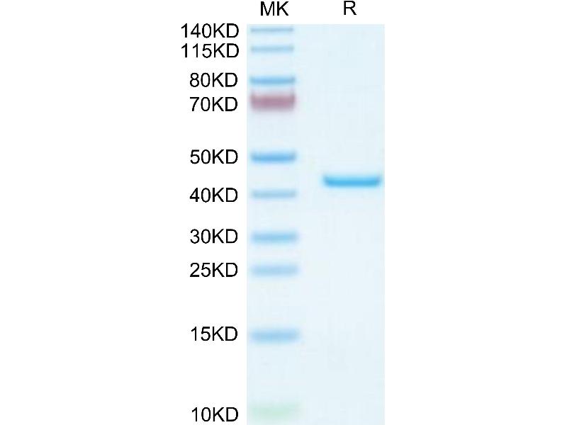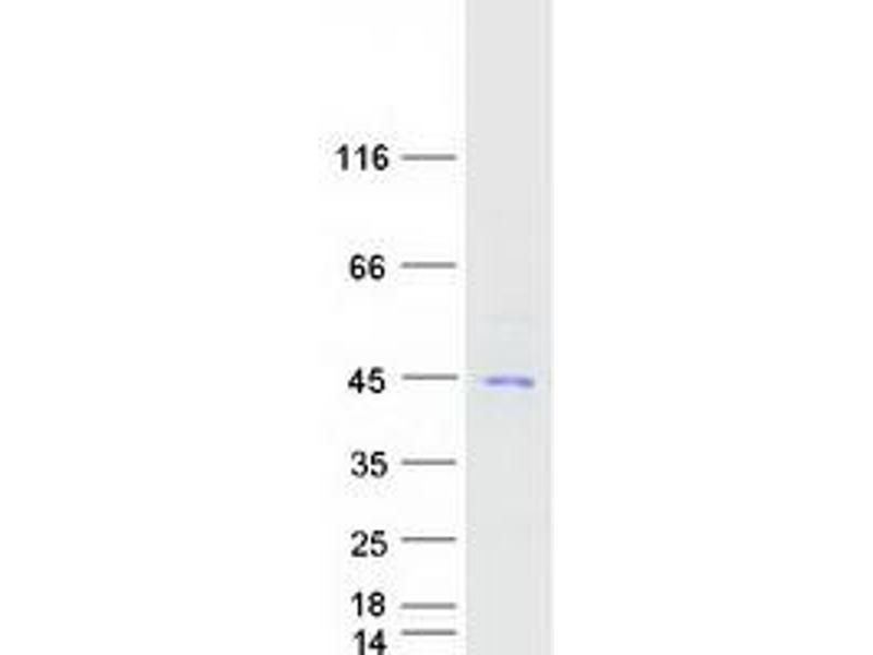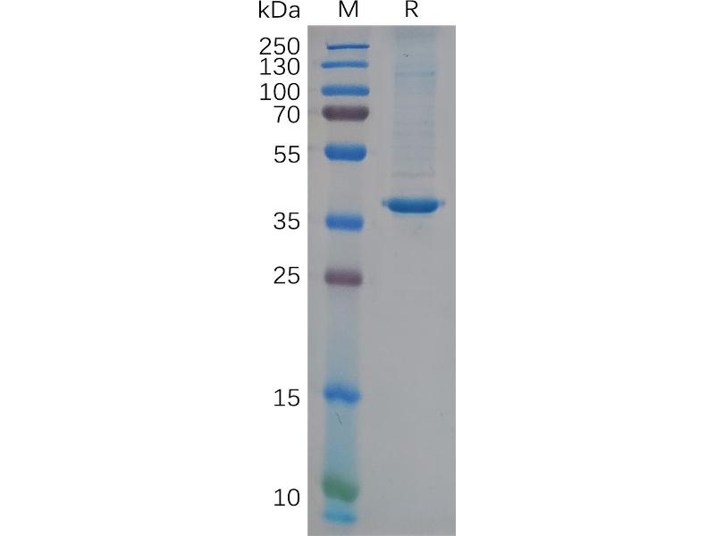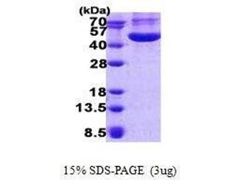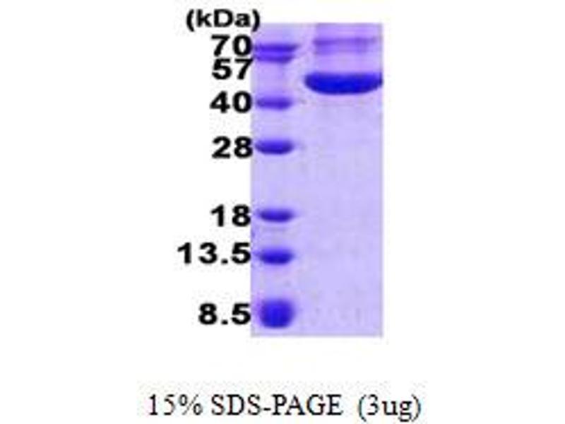 The purity of the protein is greater than 85 % as determined by SDS-PAGE and Coomassie blue staining.